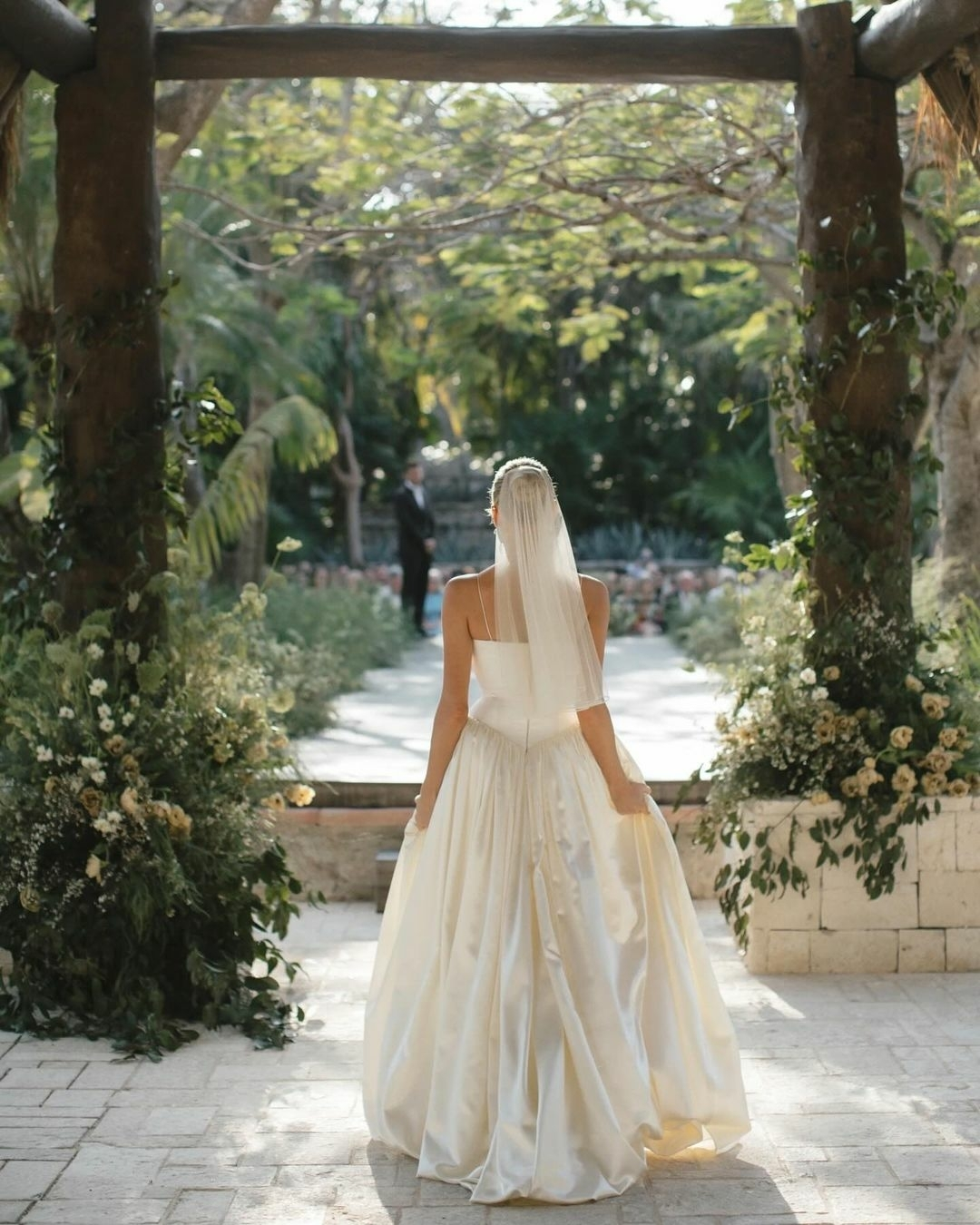 Having multiple dress changes during the wedding day is becoming increasingly trendy among brides. The wedding ceremony usually calls for a more classic and timeless gown matching the formality of the event, often with a veil to complete the look. For the reception, however, the choice mostly falls to more of a comfortable yet effortlessly chic option, with a mini or two-piece set for the after party.