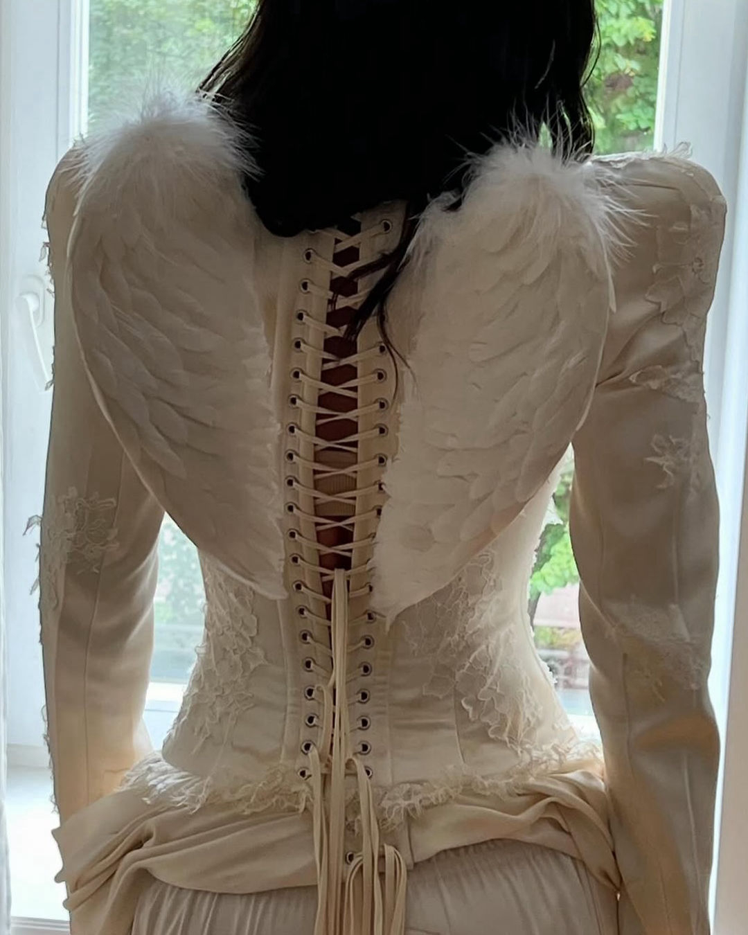 Maisie-Kate Keane recommends coming prepared with your notes from the first appointment and reviewing each point carefully. “Sit, walk, and move around the salon to confirm the skirt length. Let the seamstress know whether you will be on grass, carpet, or hard flooring, because that affects where the hem should sit. The bustle is usually marked or pinned at this stage, so make sure you like how it looks and feels. Imagine yourself dancing with the bustle in, and be honest about comfort. If it feels restrictive and dancing is important to you, consider a second look for later in the evening. Assess overall fit as well.”