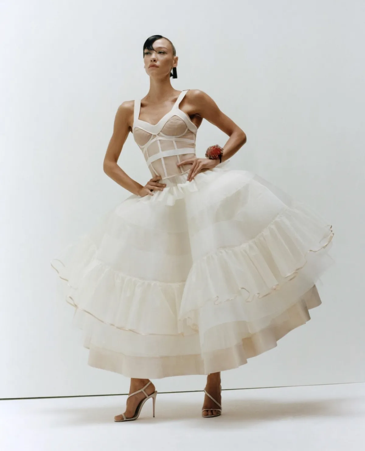 Identifying a body type is an essential step in finding a wedding dress that flatters and enhances the natural shape. One of the most common body types is the rectangular shape. This type of figure is most commonly typical for brides with an athletic build. Rectangular body type is characterized by a well-balanced figure with minimal curves. The waistline is frequently not very defined, and there is little difference in measurement between the top, waist, and hips. This type of bodies have the shoulders and hips that are usually the same width.