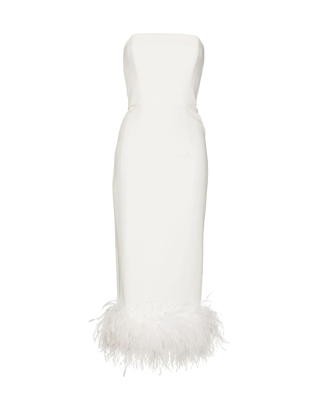 16Arlington Minelli Feather Trim Strapless Midi Dress, $1,299