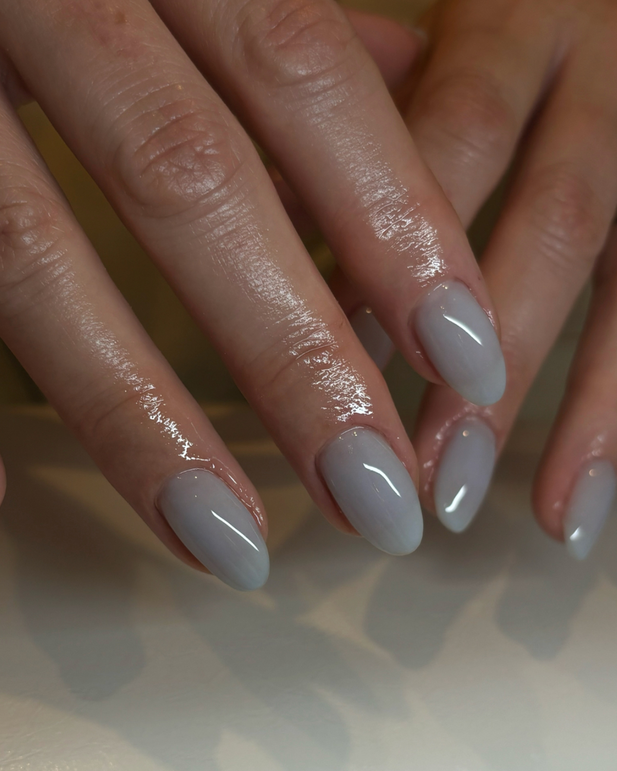 Like a shimmer on the surface of a pool, sheer blue nails bring a refreshing, weightless feel to your summer mani. This barely-there shade catches the light with hints of iridescence, adding depth without going bold. It’s equal parts ethereal and cool—perfect for weddings by the water or just channeling that just-dipped energy, no diving required.