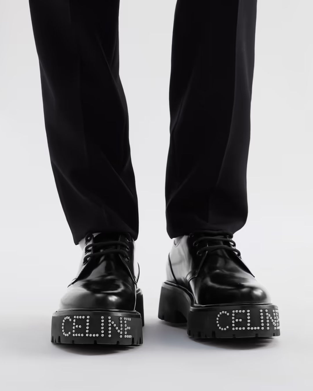 Celine Homme Logo-Studded Leather Derby Shoes, $1,250