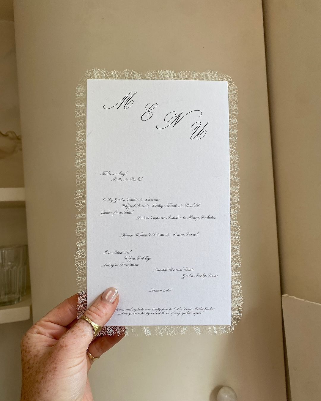 Inspired by the timeless charm of heirloom textiles – lace and embroidery motifs in wedding stationery are taking over 2025 trends. For couples seeking an authentic, vintage-inspired touch, it offers a way to blend tradition with modern romance, creating stationery that feels as beautifully handcrafted as the love it represents. This trend is perfect for those looking to add a touch of old-world charm to their wedding suite, turning every invitation into a cherished piece that guests will treasure long after the celebration.