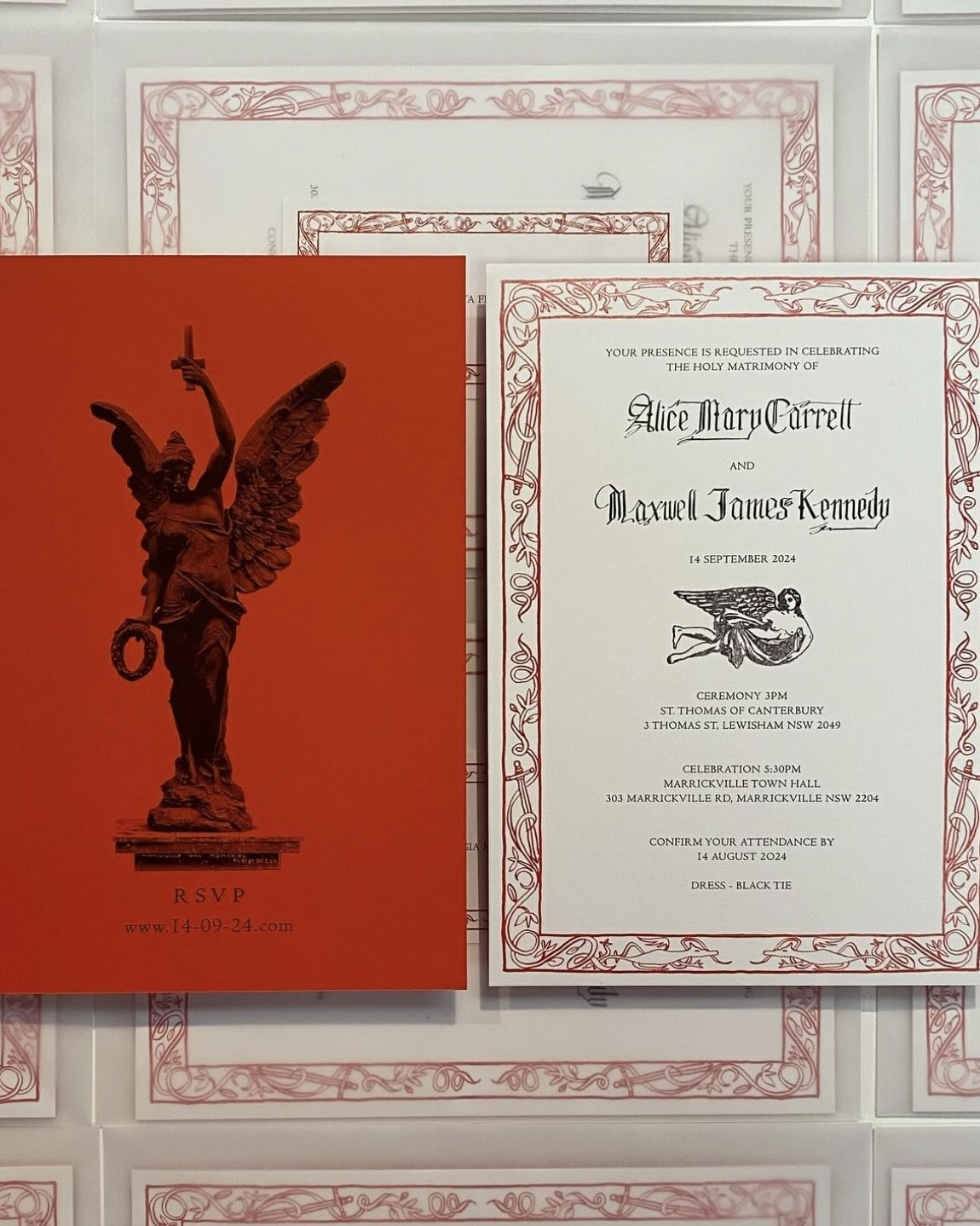 2025 is undeniably the year of vintage, bringing nostalgic charm to wedding stationery in a way that feels timeless and refined, featuring elegant copperplate calligraphy. This trend transports us back to an era of timeless glamor, where each piece feels like a treasure, crafted with intention and artistry. Picture elegant calligraphy flowing across the page, paired with bold accents or minimalist layouts that breathe fresh, modern life into classic design. Soft, muted tones – ivory, dusty rose, and faded greens – enhance the vintage aesthetic, while subtle details, like gilded edges or embossed details, elevate the design to a new level of luxury.