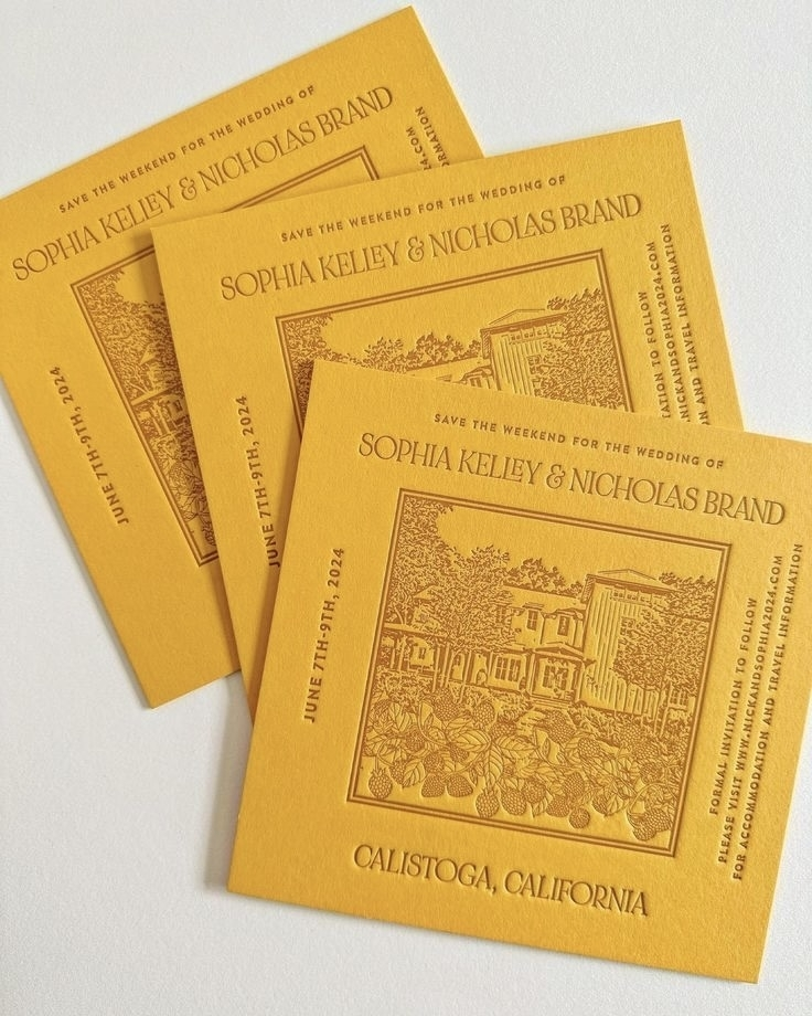 These bespoke illustrations capture not only the beauty of the destination, but also the essence of the couple’s adventure – perhaps a favorite travel memory or the place where they first met. The intricate details of each illustration create a sense of place, inviting guests into the couple's world and offering a glimpse of the journey that awaits.