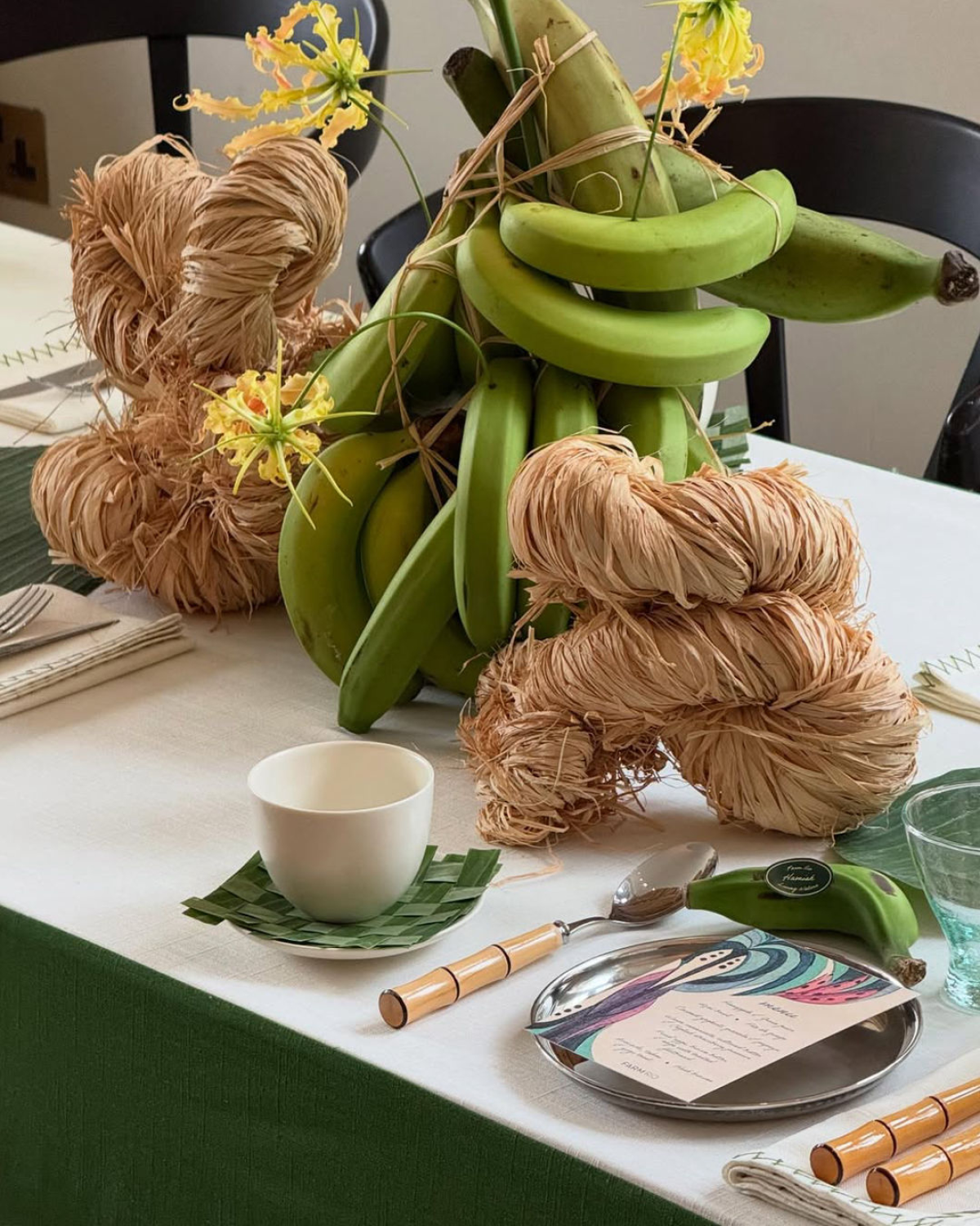 Bring the beauty of nature to your table with lush botanical-inspired decor. Highlight the theme with eye-catching centerpieces using a vibrant mix of flowers, greenery, moss, fresh fruits and vegetables. Complement these with artisanal pieces of organically shaped and textured dinnerware, plantable stationery and natural fibre green napkins.