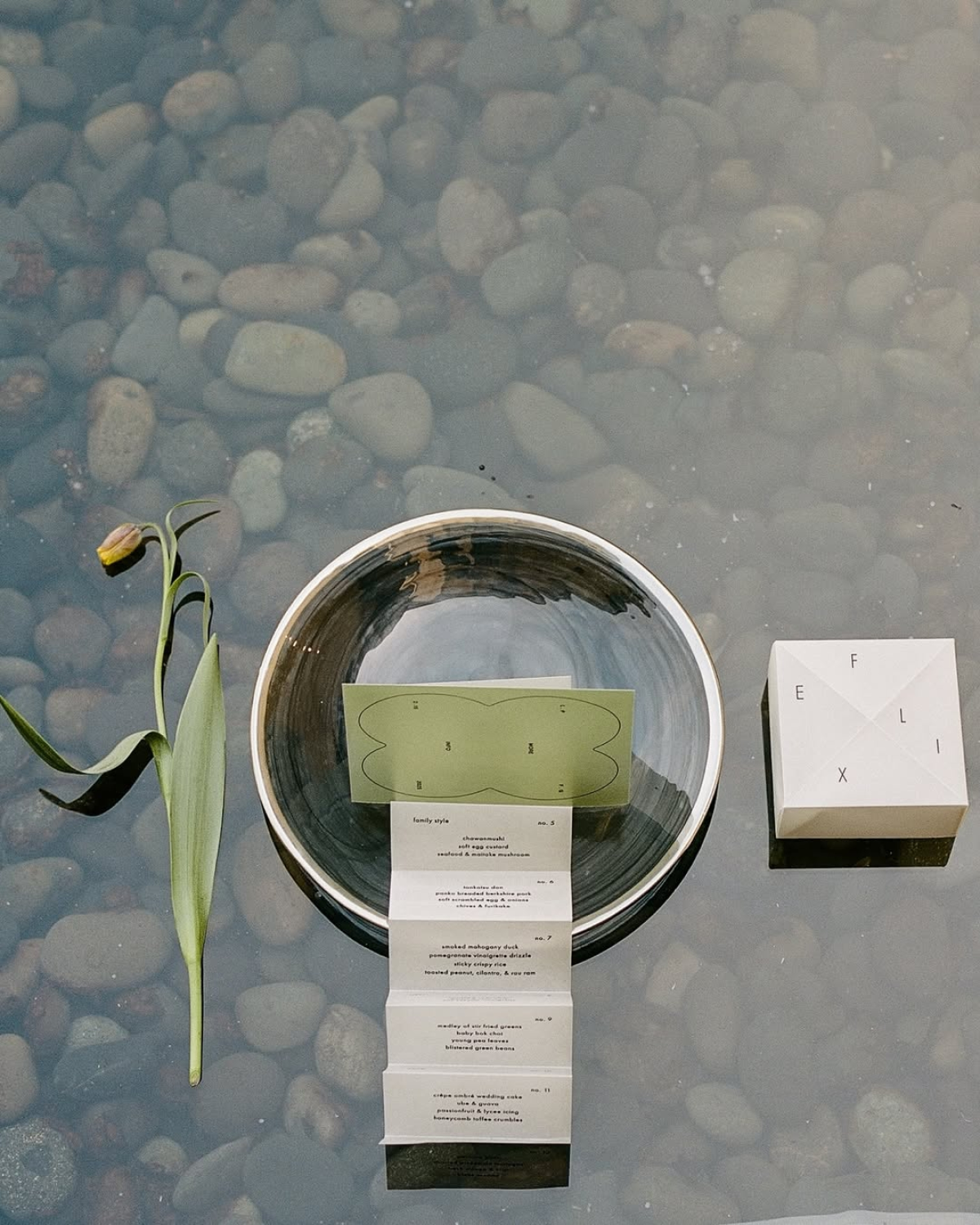 One flower can shift the whole mood. A sculptural stem casually slipped into a menu or laid across a plate feels pared-back and quietly powerful. Pair it with sharp menus, clean lines, and not much else. The vibe? Intentional minimalism that doesn’t try too hard…because it doesn’t have to. Every guest is greeted with a detail so understated it barely speaks, but still makes itself known.