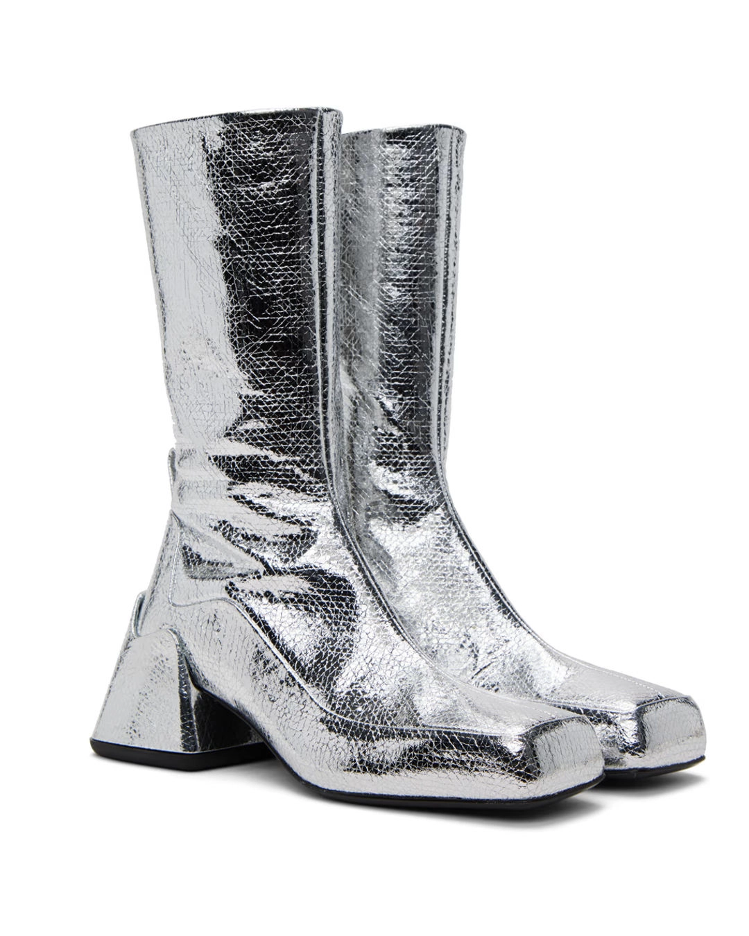 Jil Sander Silver Lame Crackle Boots, $1,690