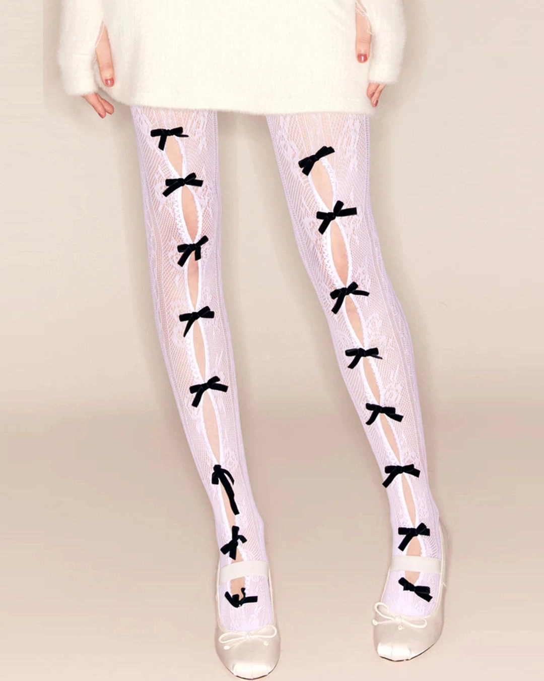 Nodress White Bowknot Fishnet Tights, $50