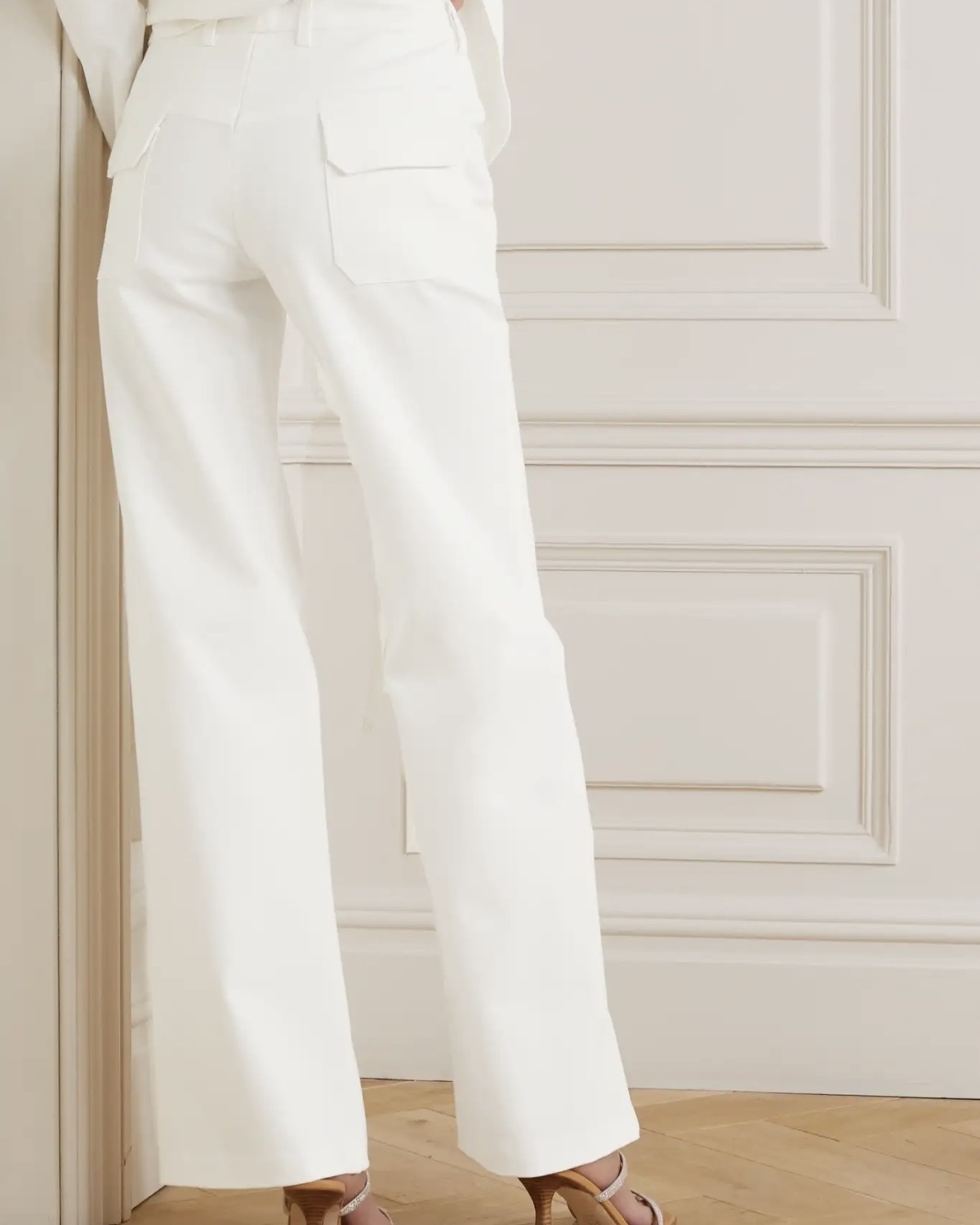 There are plenty of multi-brand boutiques across the globe where every bride can find the perfect pantsuit for her wedding. Farfetch, Net-a-Porter, and SSENSE showcase alternative designs from underground designers like Dries Van Noten, Comme des Garçons, Alexander McQueen or Khaite. More pronounced brands like Jacquemus, Cult Gaia, and Jil Sander can be found on MATCHESFASHION.com and Moda Operandi. The main trend for weddings in 2022 is pantsuits which feature cuts-out. Another popular trend we're seeing this year is the inclusion of ropes and ties. Also pay attention to fitted silhouettes with a corset insert or a clear waistline.