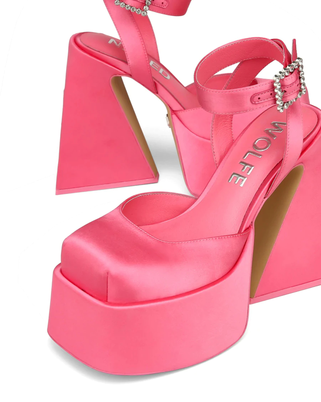 Naked Wolfe Jackie Pink Satin Platform Sandals 150mm, $300