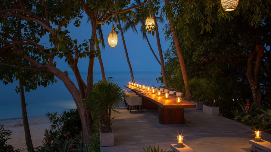 At Four Seasons Resort Koh Samui, every on-property offering and experience feels like it belongs in a honeymoon out of a movie (or wildly popular HBO T.V show)—except here, the only drama is deciding how to spend your day. For couples craving adventure, a private chartered boat whisks you away to the Anthong National Marine Park, where you can explore hidden beaches, toast champagne to the horizon, or enjoy a secluded meal on the shore. If romance is the priority, a beach picnic for two—complete with plush seating and a gourmet spread—is effortlessly arranged, while the “Once in a Blue Moon Cove” offering features the ultimate private dinner setting, where a wine-paired meal unfolds against a backdrop of crashing waves and a glowing sunset.