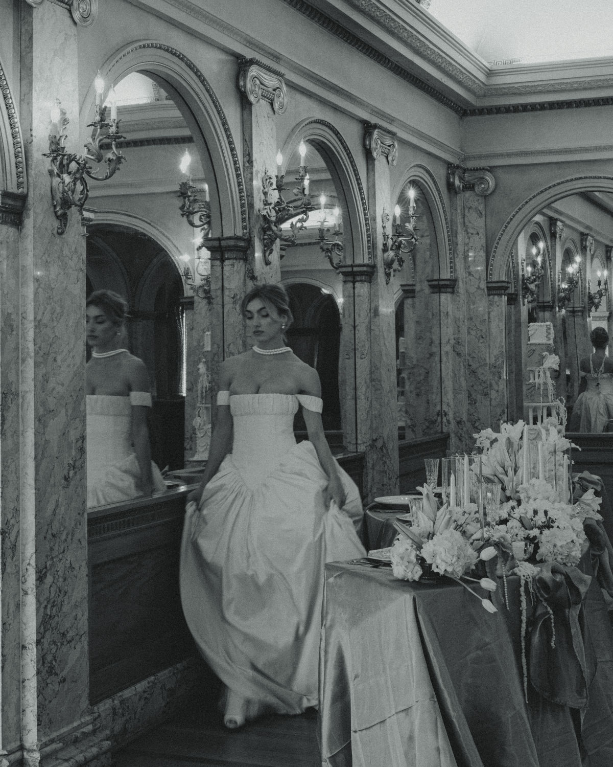 At the heart of it all stands the bride, a vision of effortless grace and modern chic, breathing life into a scene where past and present intertwine, and romance feels endless.