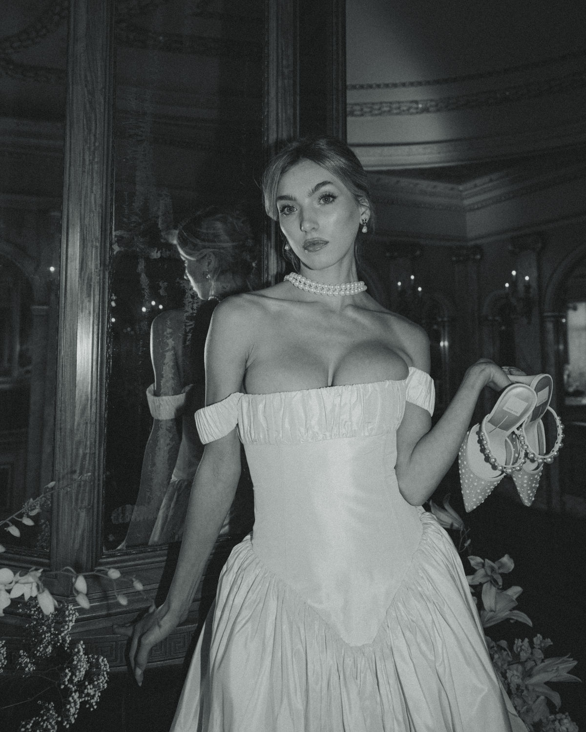Dreamed up by the creative mind of Olive & Sage Floral and artfully captured by Tay Mayes Photos, this editorial is a quintessential ode to elegance and romance, dripping with old-world opulence. Here, within the McCune Mansion’s gilded and mirrored interiors, light and shadow dance across every surface, creating cinematic depth and heightening the air of nostalgia and longing.