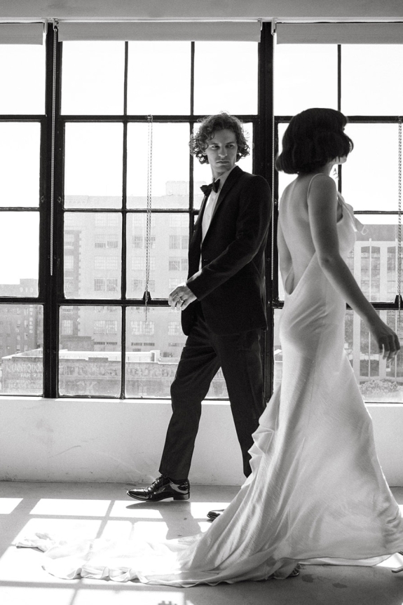 130 guests wore total black as the bride stunned in her custom made wedding gown