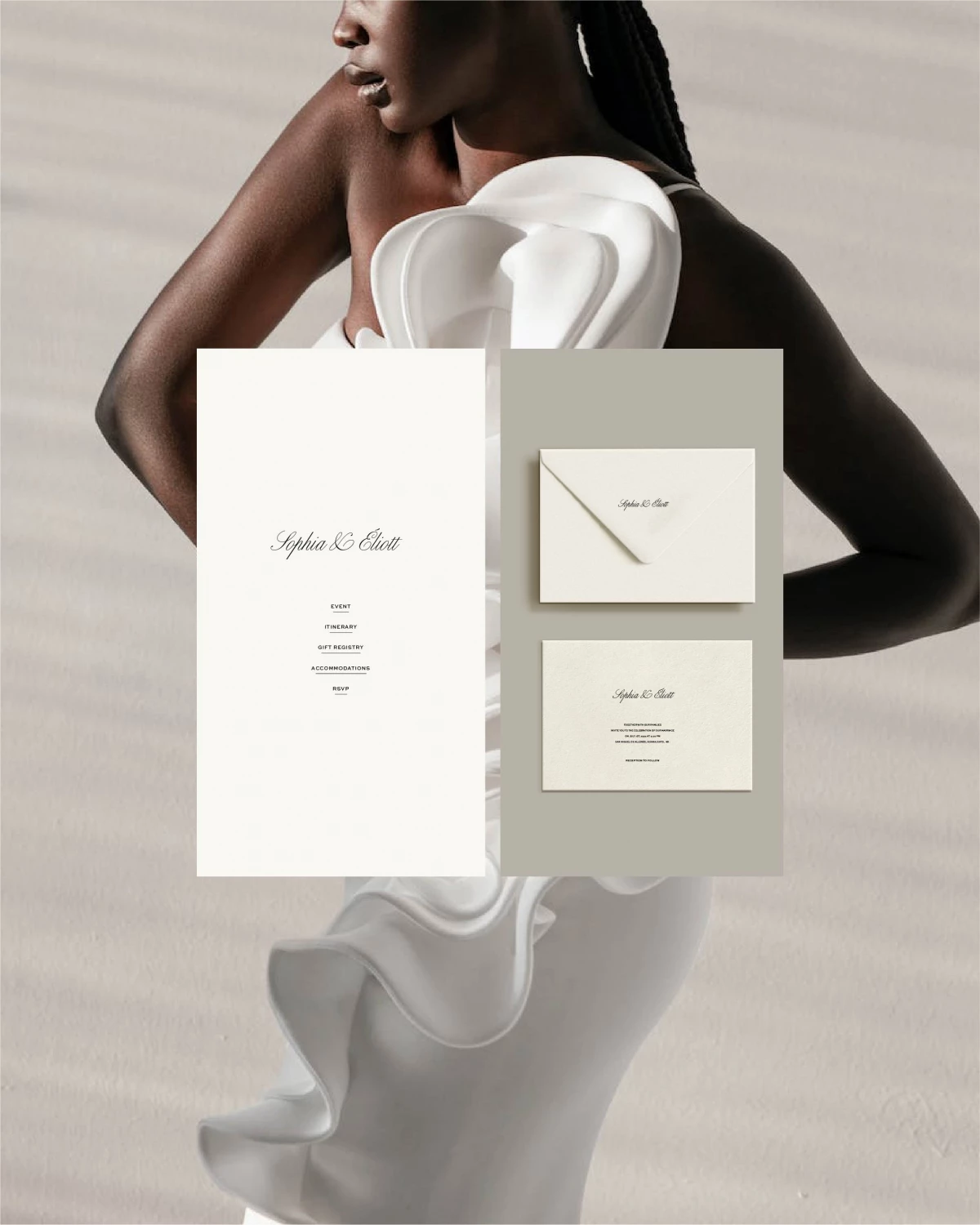 With their Semi-Custom typography & layout collections, you can select the one that best aligns to your style and fits with your event aesthetic. Keep in mind each typography has its own voice and tone. Their collections express elegance through delicate and modern serifs, sans serifs and cursive types.