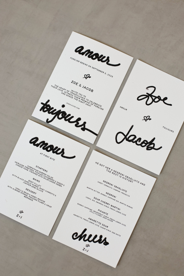 For Bianca, stationery serves as a heartfelt gift to both the couple and their guests, a tangible reminder of the big day, like a cherished postcard. From the initial save the date to the final menu card, every piece is crafted to mirror the couple’s personalities and love story, making sure that the memories endure long after the celebration ends.