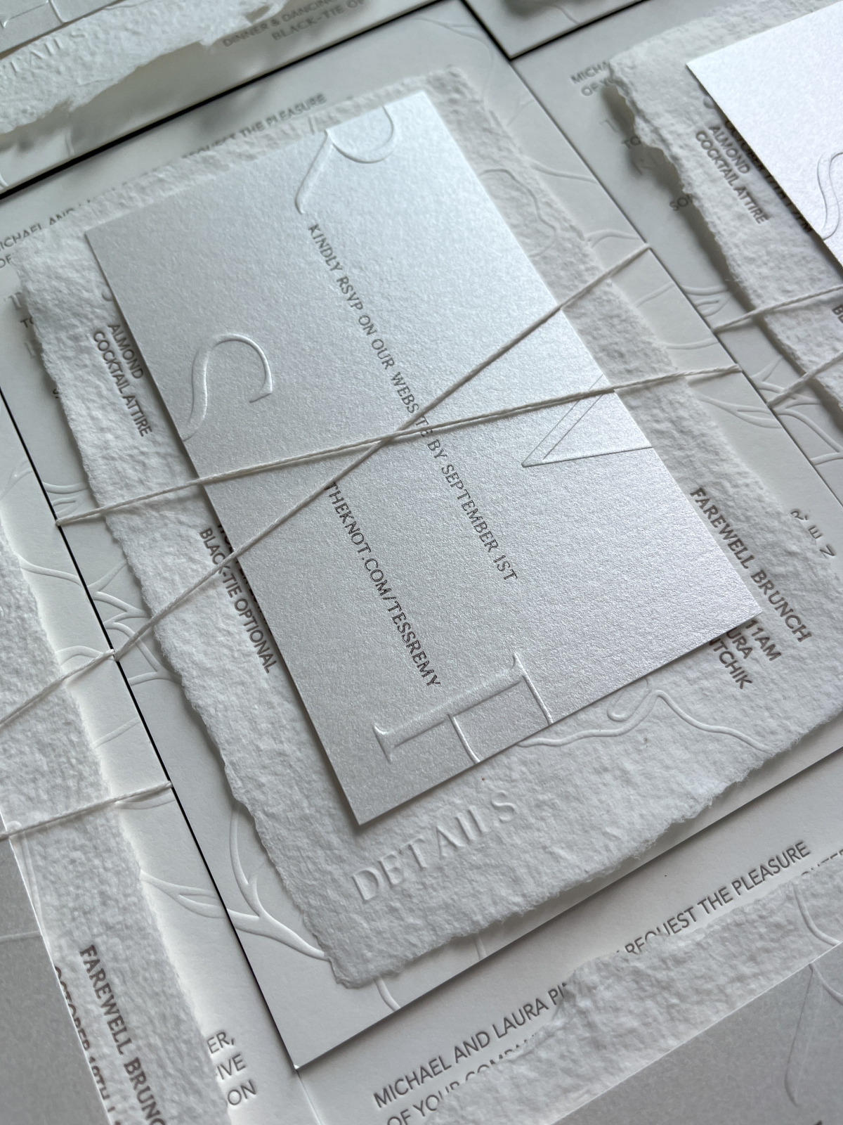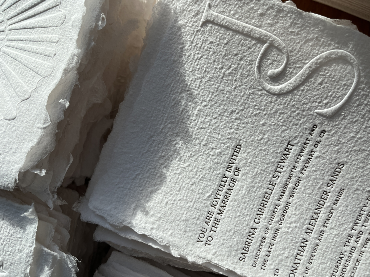 Her deep appreciation for the natural world inspires her to create her own handmade paper that is as sustainable as it is beautiful—acid-free, tree-free, and dyed with pigments derived from natural rock. Driven by a commitment to collaboration, her process invites clients to be a part of this creative journey, ensuring that each design is both personal and artfully crafted. Influenced by high fashion, editorial photography, and modern architecture, Axelle uses textures, hues, and contrast to bring a timeless, yet contemporary touch, to every couple’s unique story.