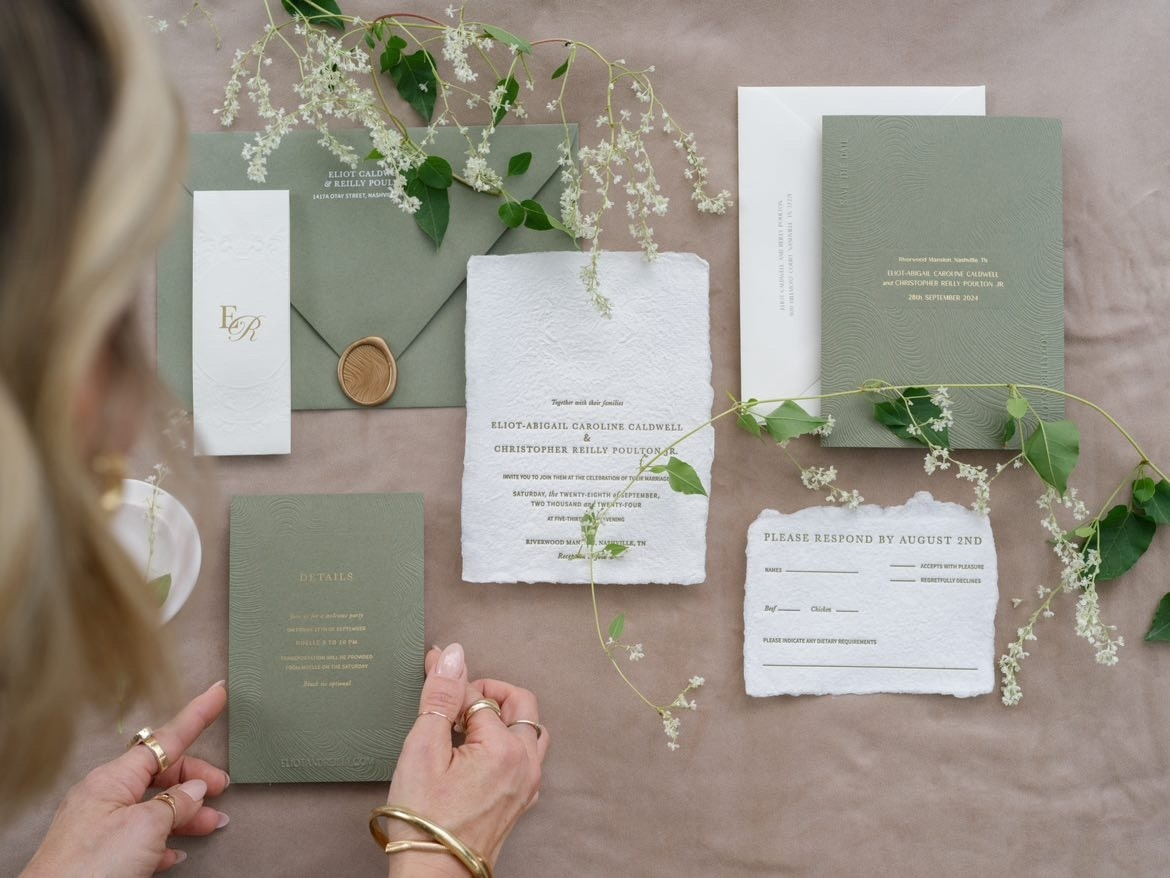 From save-the-dates to invitations and day-of stationery, Papier June’s wedding papers are more than just printed details – they’re an invitation into the heart of your event, setting the tone and hinting at what guests can expect. Specializing in the art of letterpress and embossing, Axelle creates intentional designs, seamlessly weaving organic textures with creative concepts.