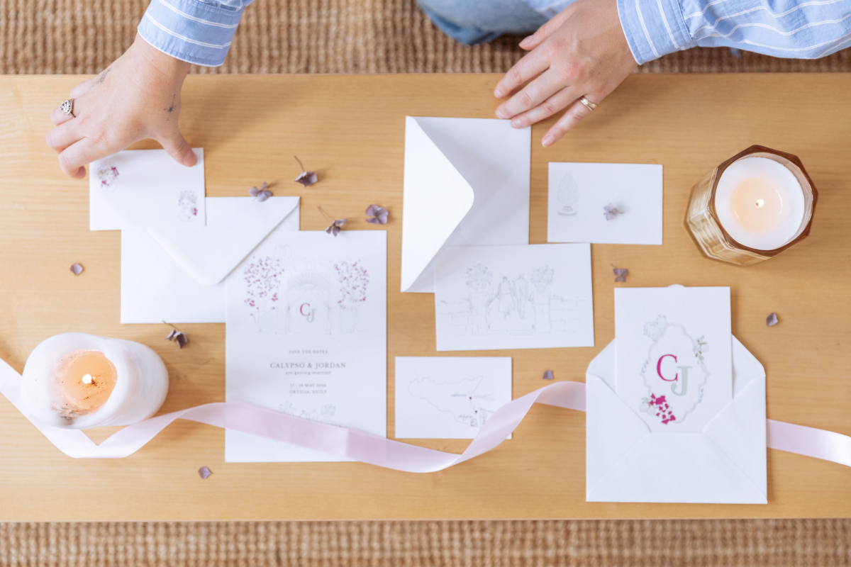 SCCS specializes in bespoke wedding stationery, blending hand-drawn, organic, and whimsical elements to craft pieces that are as distinctive and personal as the couples they celebrate. Samantha delights in the unique character of each project, viewing every design as a fresh opportunity to tell a couple’s story and bring their vision to life. This ever-evolving creative process keeps her work dynamic and filled with meaning.