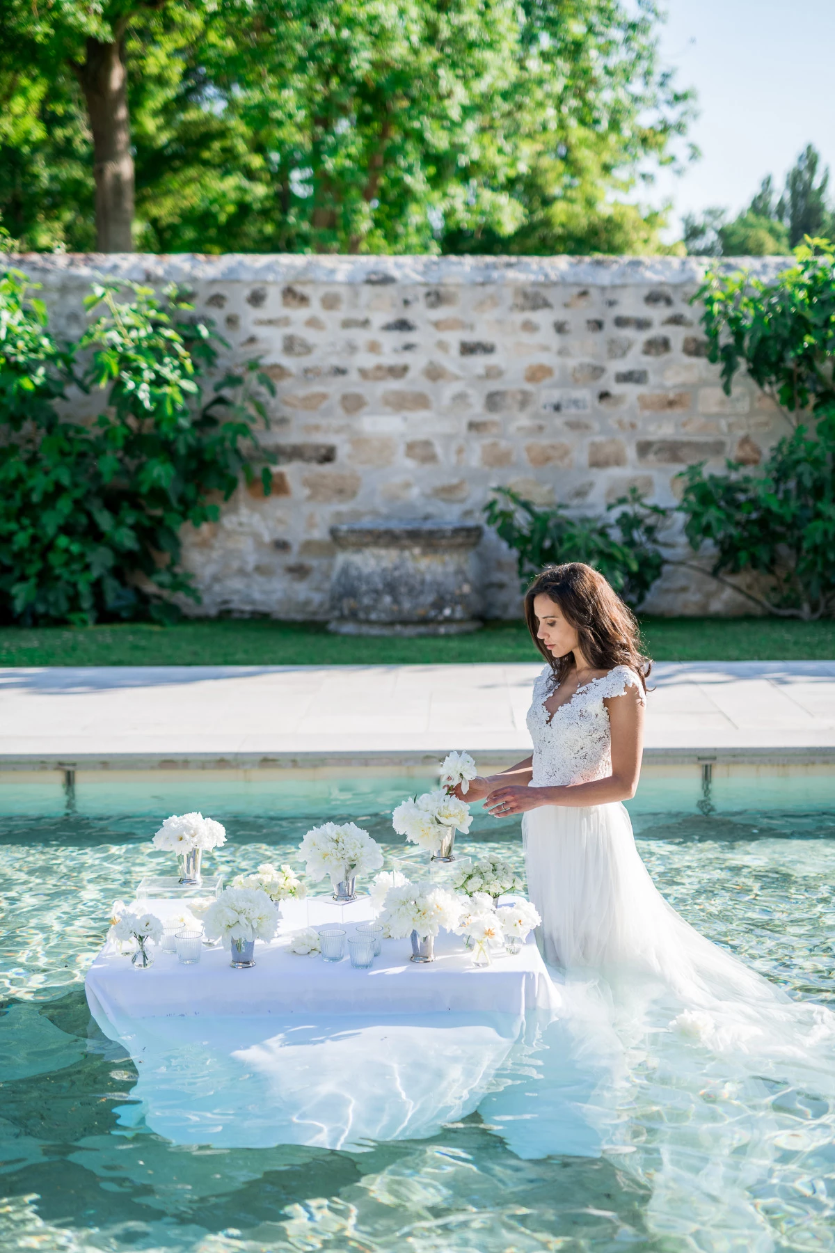 An open-air ceremony in a classic French garden accompanied by grand fireworks show, a ceremony in an ancient chapel from the 18th century, a cocktail party in the greenhouse or by the pool, a wedding reception in a sophisticated setting — the combinations and possibilities are endless!