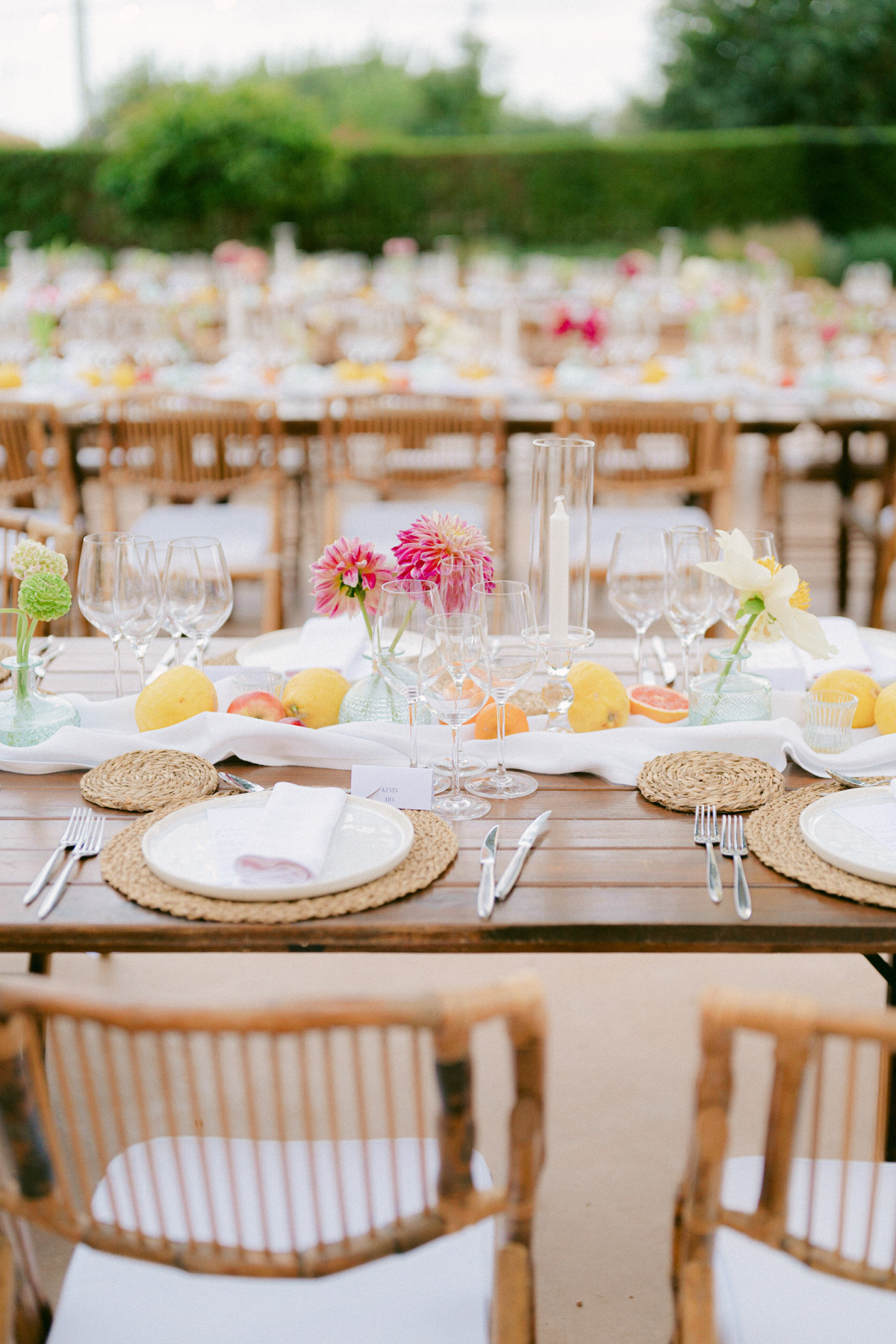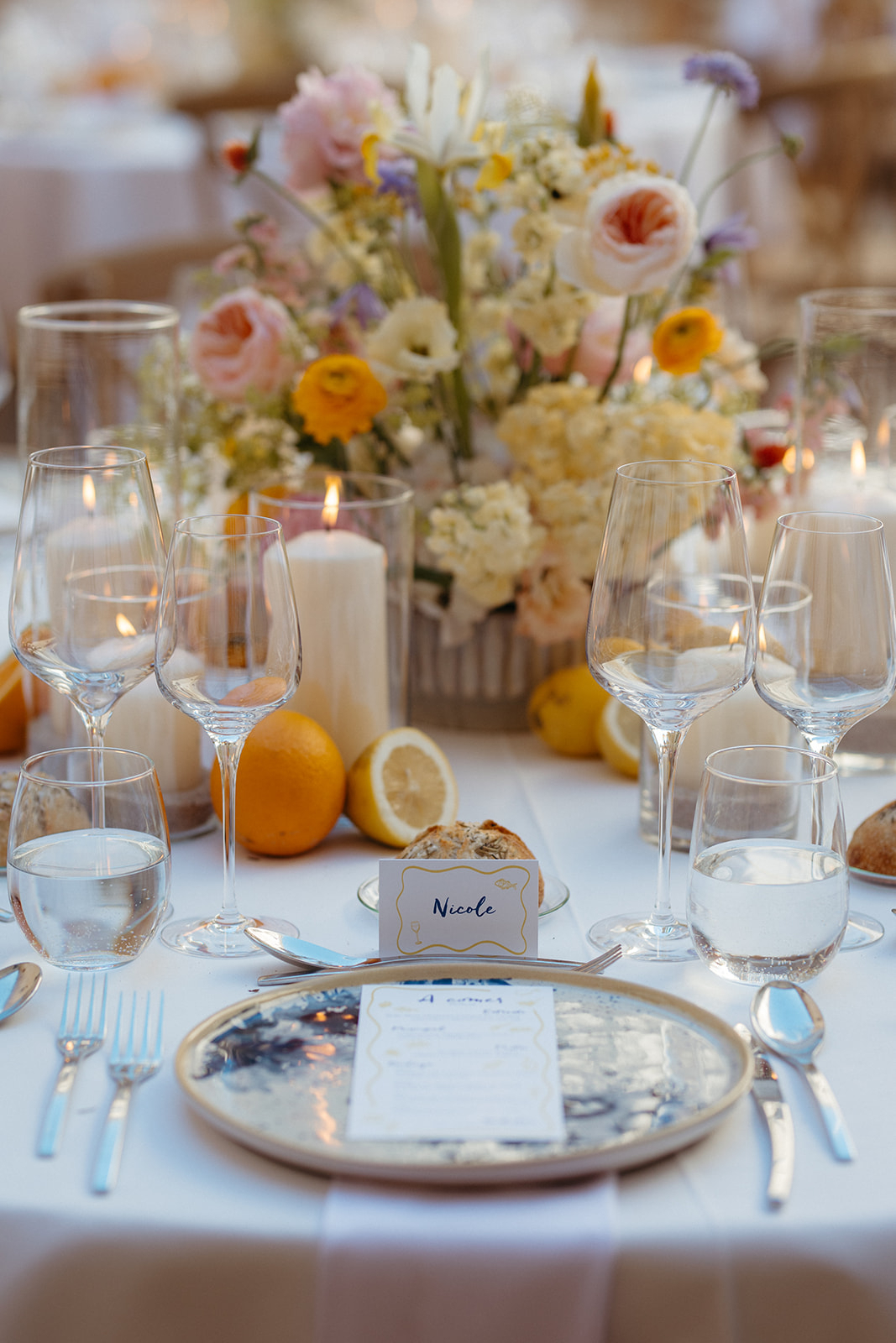 The venue offers endless possibilities: exchange vows beneath the ancient pine tree, enjoy a cocktail reception by the pool, dine at a long, picturesque table amid fragrant orange groves, or savor an intimate dinner in the charming courtyard.
