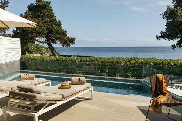 The hotel is set directly on the beachfront, with uninterrupted views of the Mediterranean and a layout that moves naturally between indoor and outdoor spaces. Days unfold around the pool, terraces and shared areas, with a focus on seasonal Mediterranean cuisine and a slower, more intentional pace.