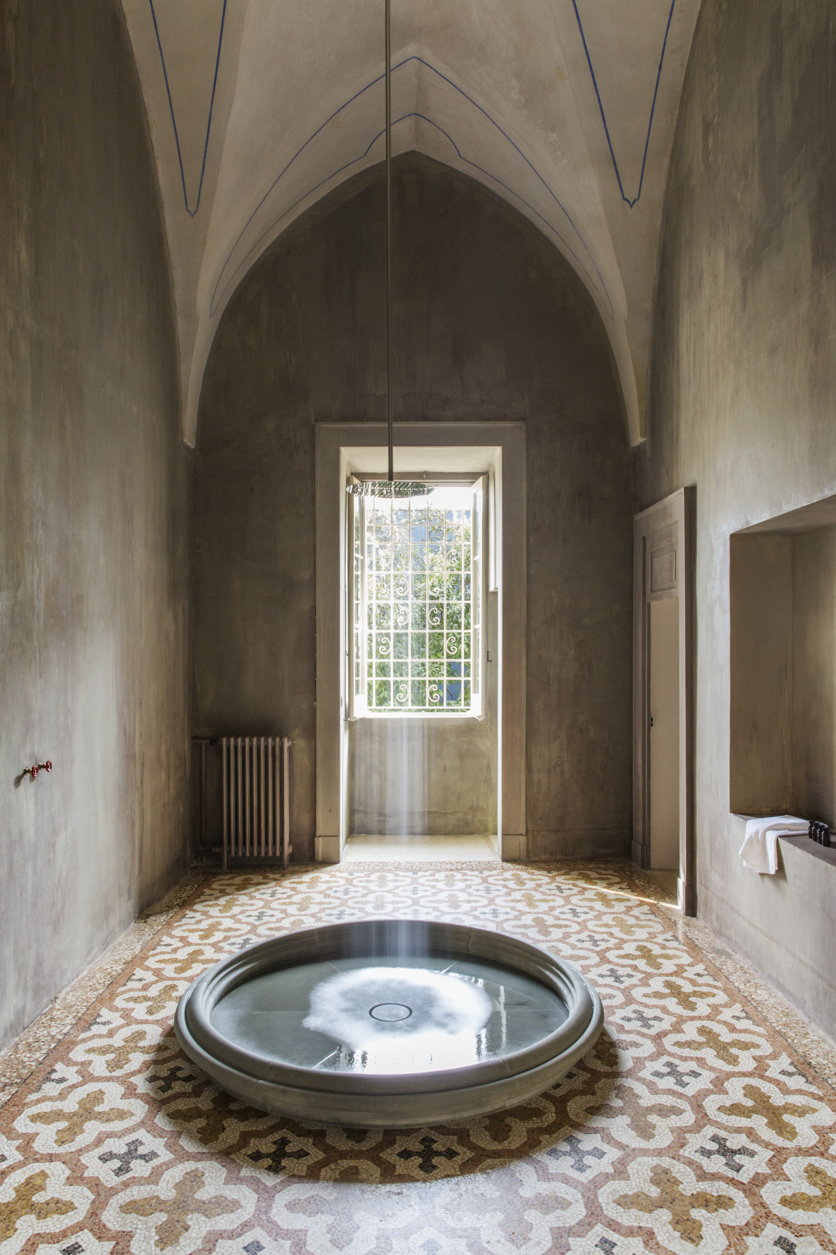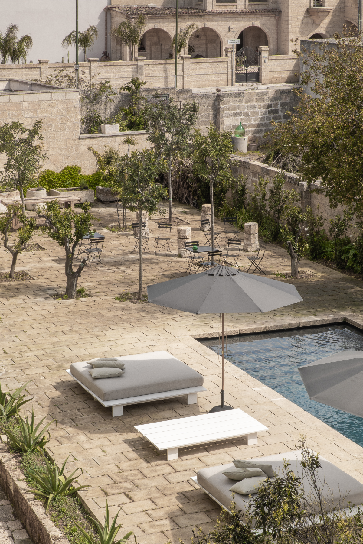 Located in Italy’s exquisite Puglia region, Palazzo Daniele is an eleven -suite luxury hotel housed in a 161-year-old family palazzo. Inspired by the concept of absence, the hotel’s minimalist design strips back as much as possible, while augmenting the grandeur of the palazzo’s original frescoes, vaulted ceilings, and mosaic flooring, to create a dramatic canvas for the property’s contemporary art collection.