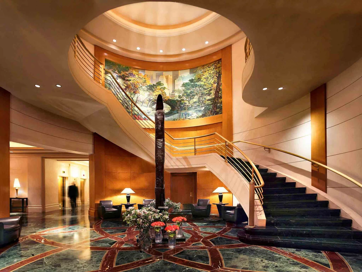 The lobby is super chic but also inviting, with a huge rotunda ceiling and snazzy curved staircase. You've gotta check out the mural inspired by Central Park - it's a fun surprise and reminds you nature's nearby.