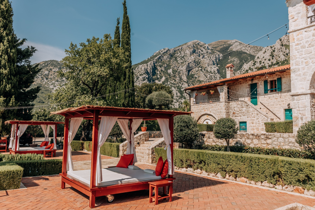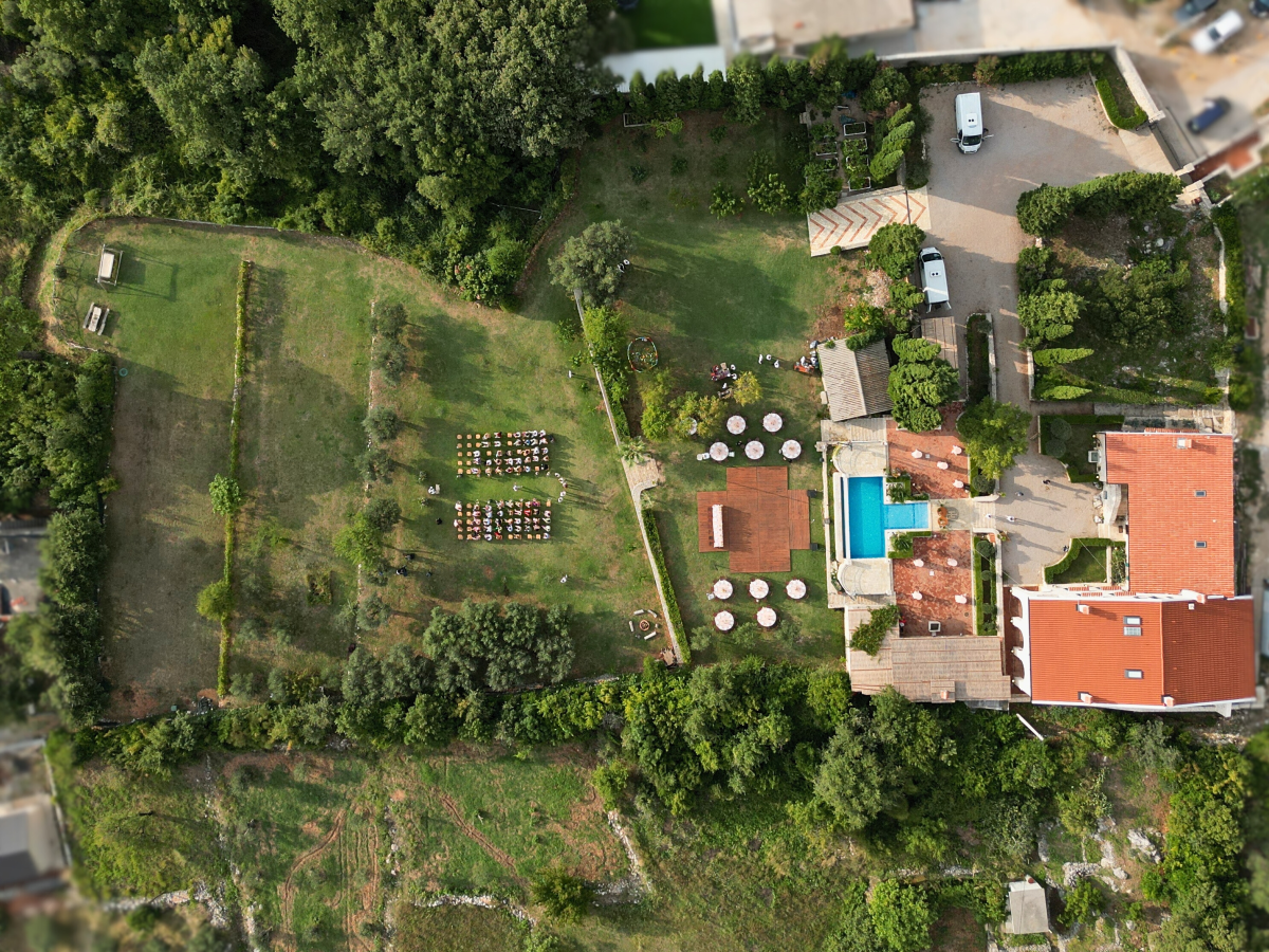 The estate features seven opulent suites, each adorned with handcrafted local wood furniture, preserving the traditional Montenegrin coastal stone house aesthetic. Accommodating up to 18 guests, the villa boasts a heated infinity swimming pool with panoramic Adriatic Sea views, complemented by sunbeds and pool cabanas. The expansive 5,000m2 private grounds include a 100m2 event room, BBQ facilities with a grand dining table, a lounge area, a firepit, and a sea-view wooden swing, all designed to provide complete privacy for an unforgettable experience.