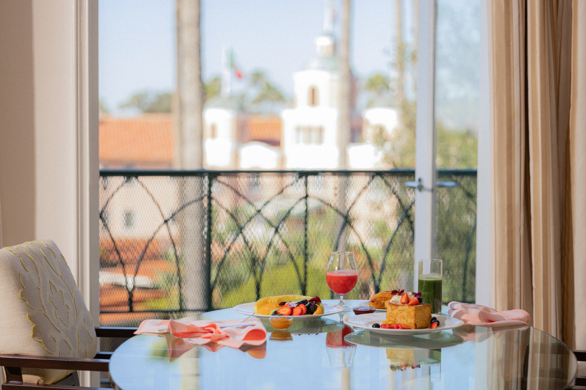 Now I gotta say, the hotel's got some real nice architecture. It's got that Mediterranean vibe but with some modern California flair, you know? The original designer, Elmer Grey, he did a real nice job. And they've renovated over the years without losing that old-school charm. Can't forget that banana leaf wallpaper either - it's been there since the 1940s and it just screams glamour.