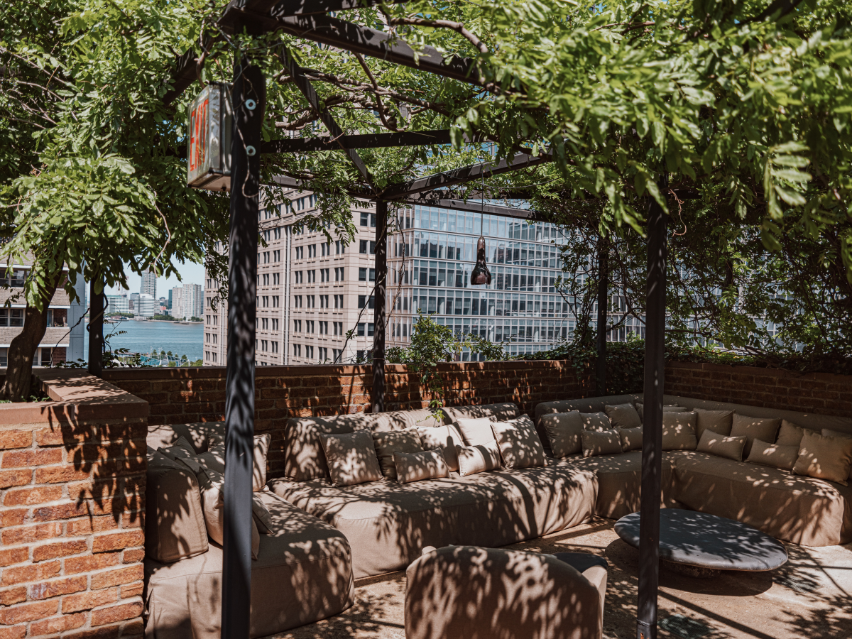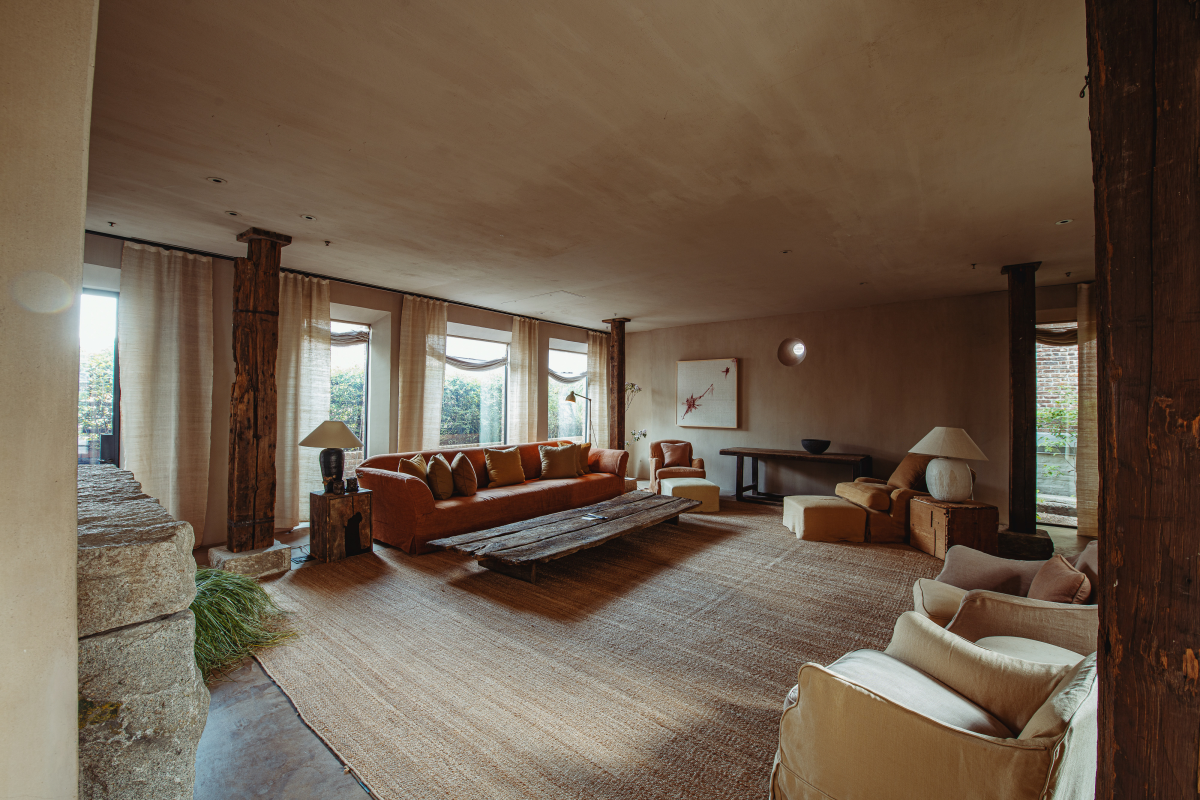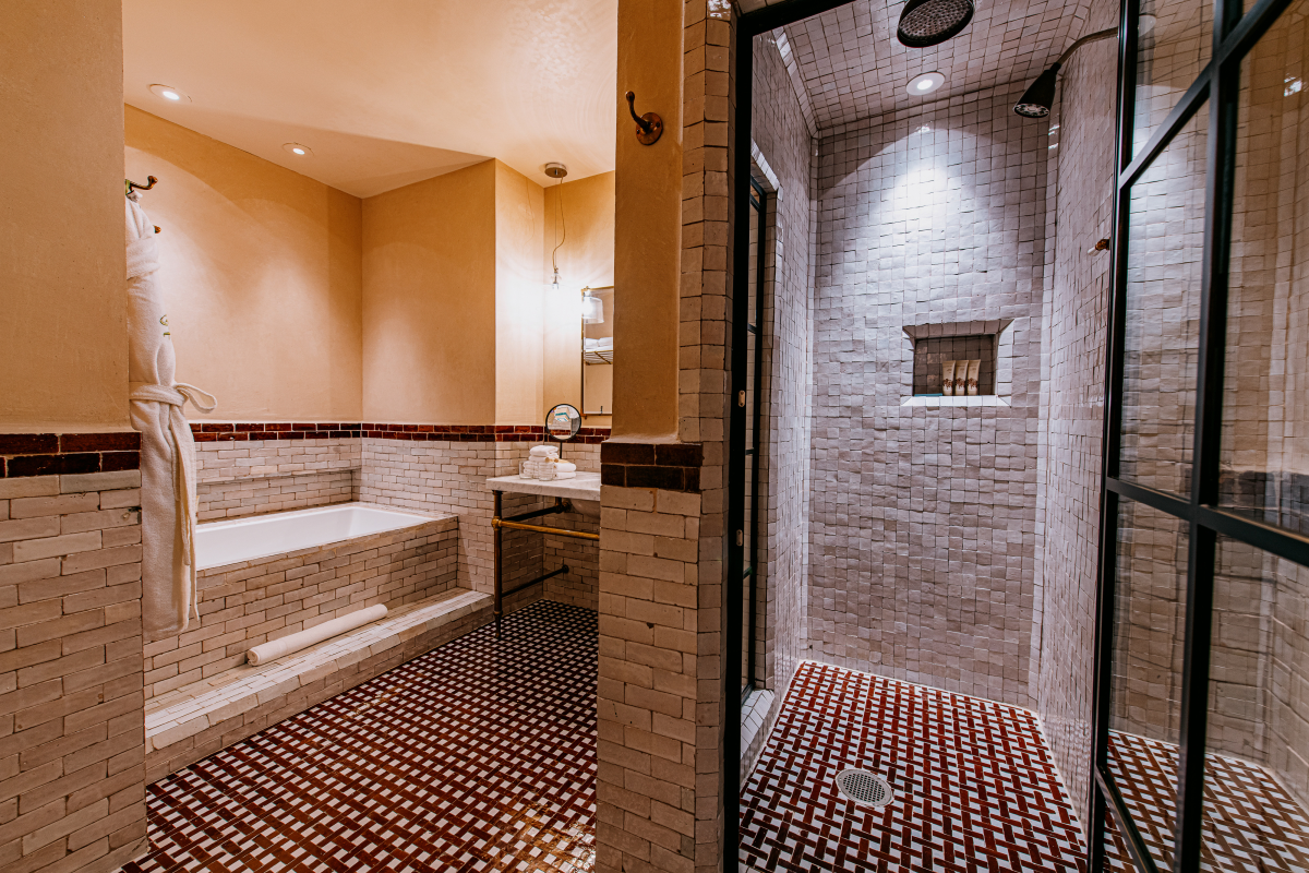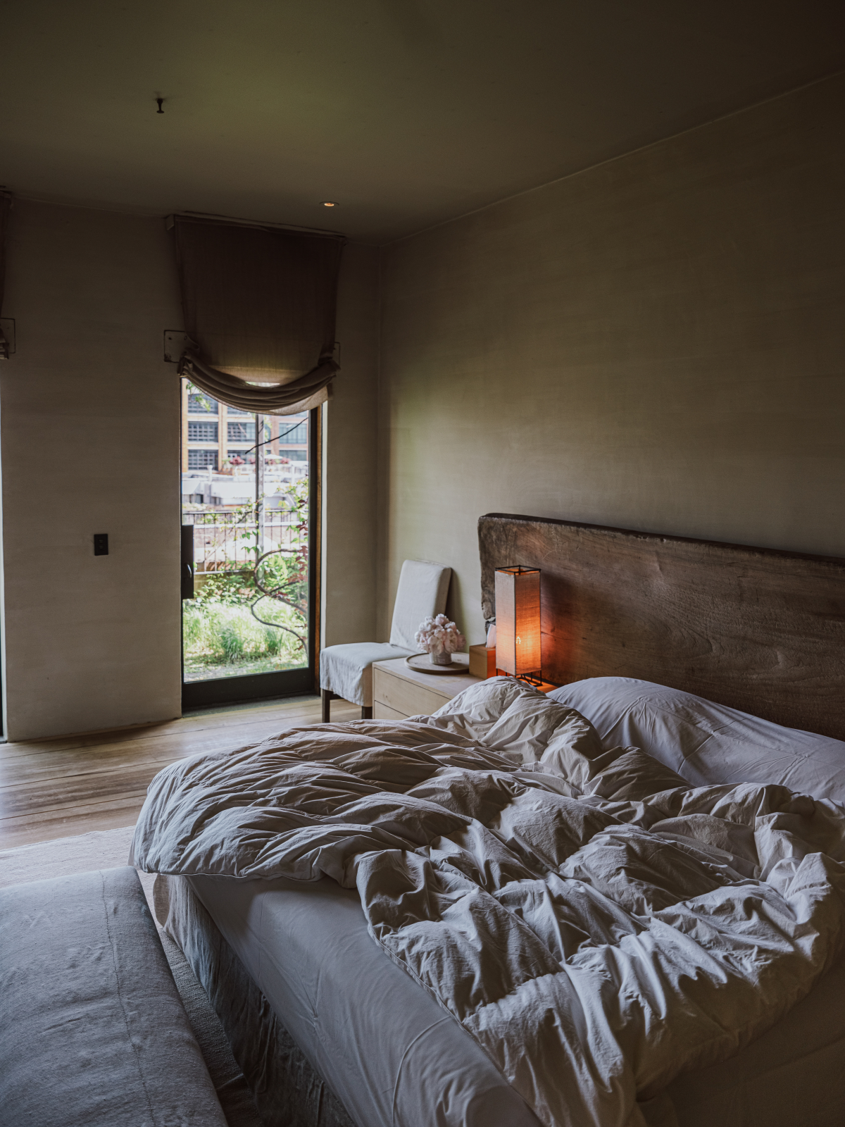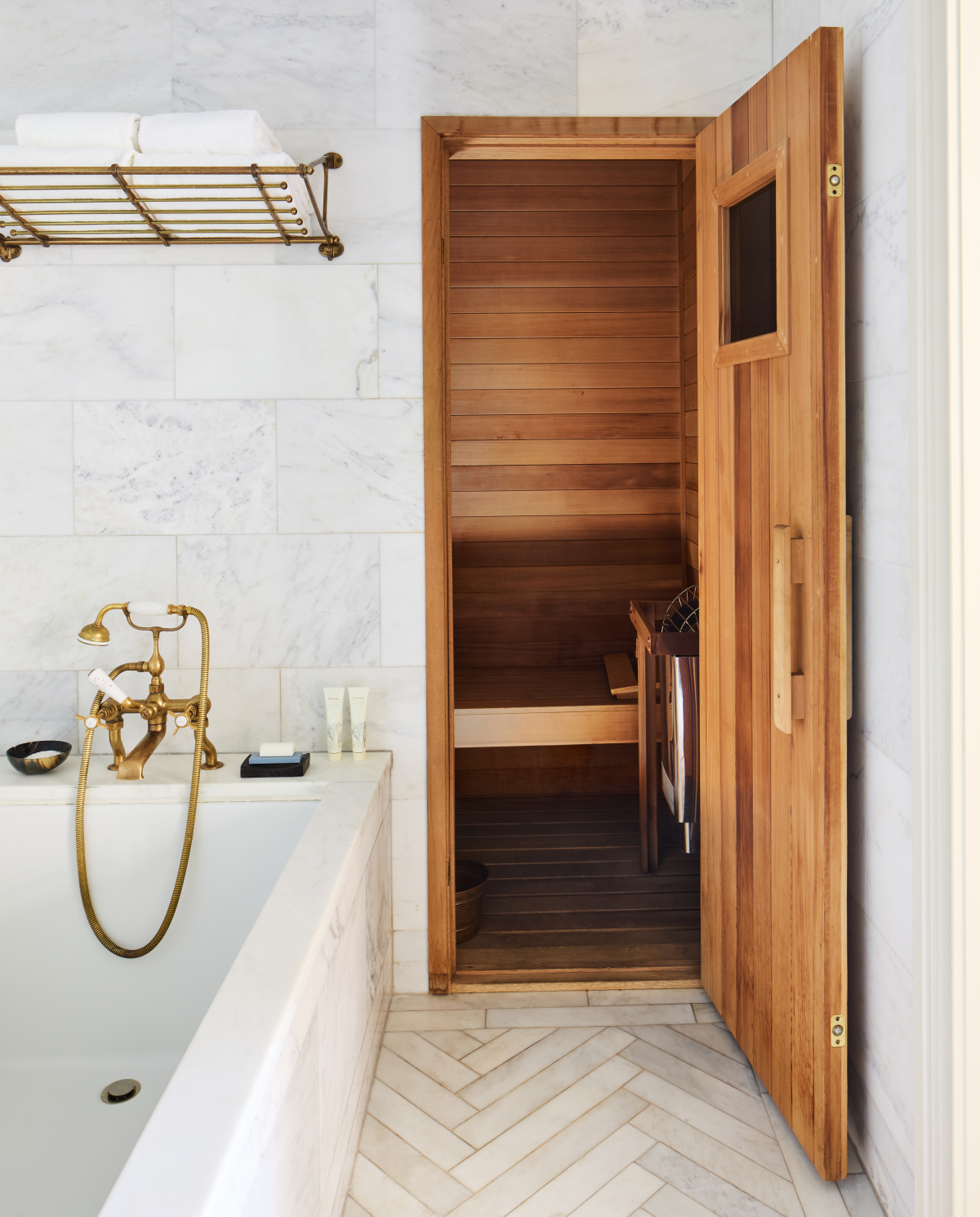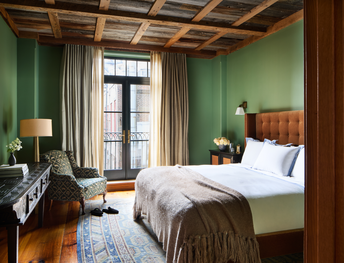 The rooms, each individually imagined, extend the hotel’s signature warmth—floor-to-ceiling windows revealing either the lush courtyard below or the quiet pulse of Tribeca streets. Tiled bathrooms gleam with sculptural marble and soaking tubs, while the minibar playfully nods to the hotel’s co-ownership by a cultural icon, stocked with nostalgic favorites and replenished generously. It’s luxury that never takes itself too seriously, creating moments of delight between the more monumental ones.