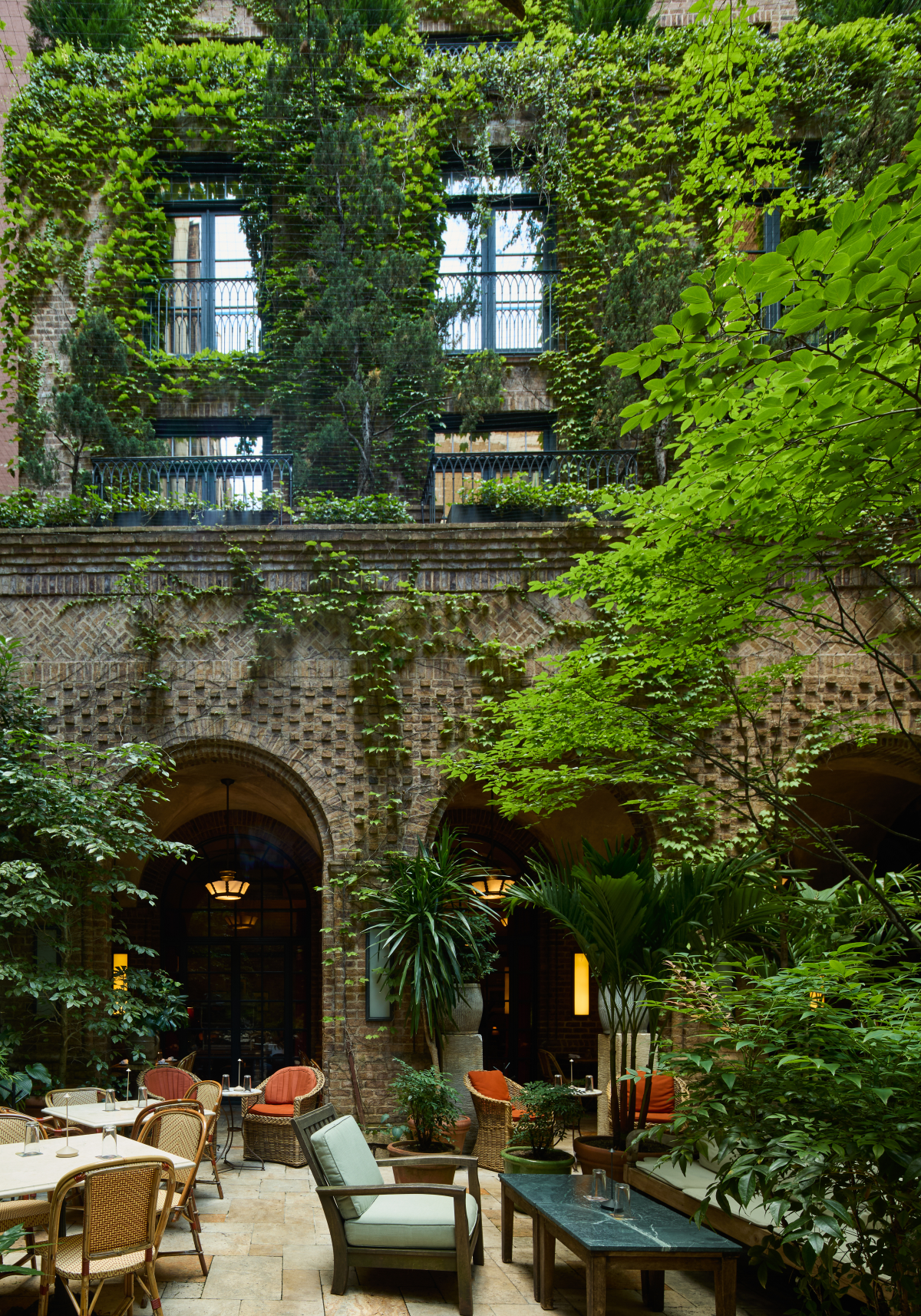 Tucked onto a quiet cobblestone corner in Tribeca, The Greenwich Hotel embodies a kind of New York romance that feels inherited, not invented. Its brick-walled courtyard climbs with ivy, lantern light spills softly across hand-loomed rugs, and leather chairs wear their stories proudly. The effect is never contrived, always considered—an ambiance that makes even first-time guests feel like welcomed regulars.