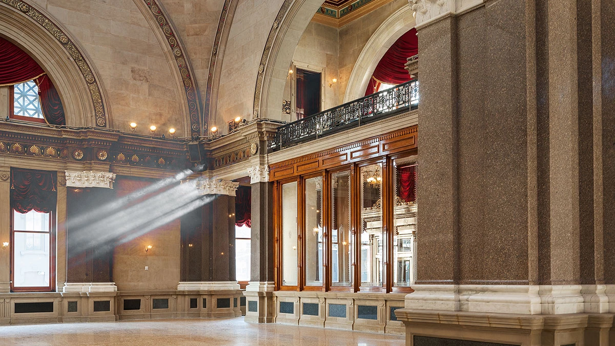 Deemed one of the most monumental spaces surviving in New York, the Main Rotunda’s 110- foot domed ceiling, original fresco, solid gold leaf trim and carefully preserved monogrammed glass oval windows inspire awe. The gorgeous space is the perfect backdrop for galas, large-scale performances, activations, art installations, award ceremonies, charity auctions, and more.